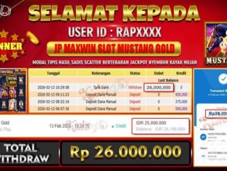 Pembayaran Jackpot Mustang Gold Rp. 26.000.000,- LUNAS !!
