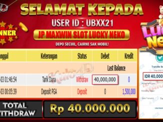 • Pembayaran Jackpot Lucky Neko – Pgsoft Rp. 40,000,000,- LUNAS !!