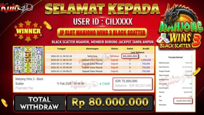 Segenap keluarga besar KULO4D mengucapkan selamat yang setinggi-tingginya kepada member setia kami yang telah berhasil menjemput kemenangan fantastis berupa Jackpot Maxwin hari ini! Keberhasilan Anda membuktikan bahwa strategi yang tepat, mental juara, dan dukungan Server Thailand VIP kami adalah kombinasi maut untuk mengubah modal receh menjadi saldo yang meluap hingga pecah selayar. Kemenangan luar biasa ini adalah bukti nyata komitmen KULO4D sebagai agen terpercaya yang selalu memberikan peluang kemenangan tertinggi (RTP Akurat) dan jaminan WD Pasti Dibayar secepat kilat tanpa potongan sepeser pun. Terima kasih telah mempercayakan keberuntungan Anda bersama kami; teruslah bermain, pertajam insting Anda, dan bersiaplah menjadi sang juara berikutnya yang mengguncang dunia hiburan digital hanya di KULO4D: Rajanya Slot Asia 2026!