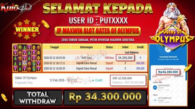 Segenap keluarga besar KULO4D mengucapkan selamat yang setinggi-tingginya kepada member setia kami yang telah berhasil menjemput kemenangan fantastis berupa Jackpot Maxwin hari ini! Keberhasilan Anda membuktikan bahwa strategi yang tepat, mental juara, dan dukungan Server Thailand VIP kami adalah kombinasi maut untuk mengubah modal receh menjadi saldo yang meluap hingga pecah selayar. Kemenangan luar biasa ini adalah bukti nyata komitmen KULO4D sebagai agen terpercaya yang selalu memberikan peluang kemenangan tertinggi (RTP Akurat) dan jaminan WD Pasti Dibayar secepat kilat tanpa potongan sepeser pun. Terima kasih telah mempercayakan keberuntungan Anda bersama kami; teruslah bermain, pertajam insting Anda, dan bersiaplah menjadi sang juara berikutnya yang mengguncang dunia hiburan digital hanya di KULO4D: Rajanya Slot Asia 2026!